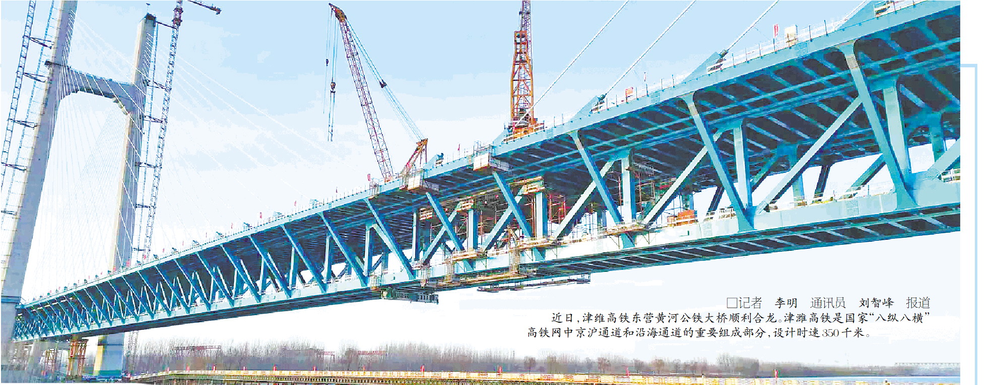 近日,津维高铁东营黄河公铁大桥顺利合龙。津潍高铁是国家“八纵八横”高铁网中京沪通道和沿海通道的重要组成部分,设计时速350千米。